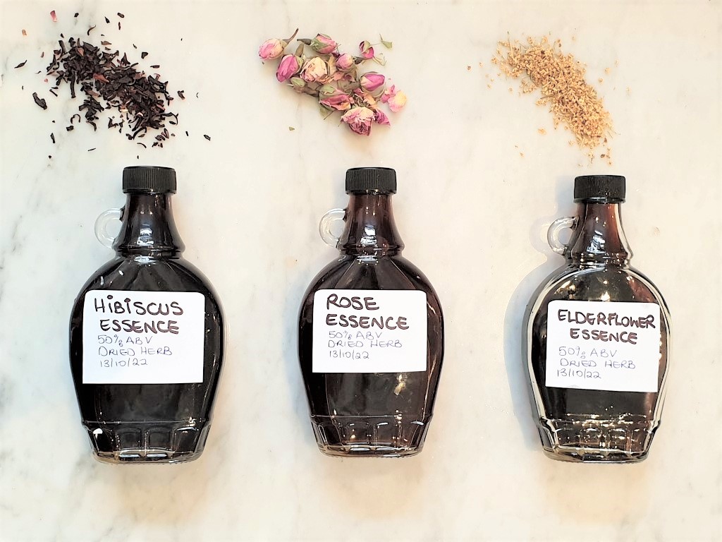 To create an essence, choose your alcohol from vodka, being the most commonly used, or Bacardi, which has a slight vanilla flavour or another spirit, then select your herb and add it to the alcohol and allow it to steep for anywhere from a few days to weeks or months.