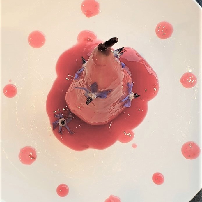Hibiscus & Orange Syrup With Baked Pears