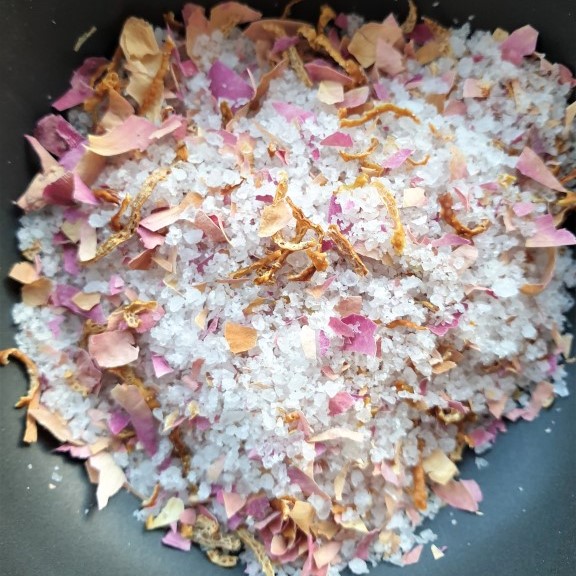 These salts are a great way to add interesting flavours and a little colour to just about any meal or even baking. This rose and lemon version is delicious sprinkled over double chocolate chip cookies, caramel slice or pork dishes.