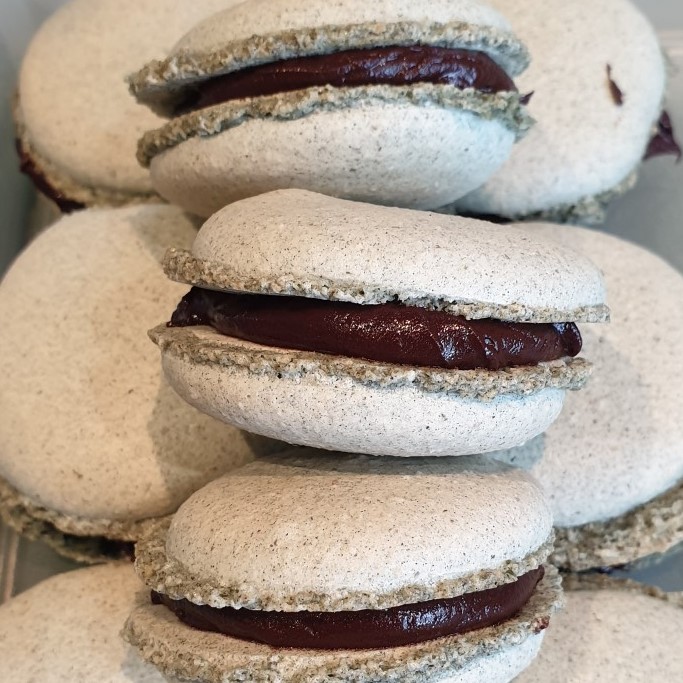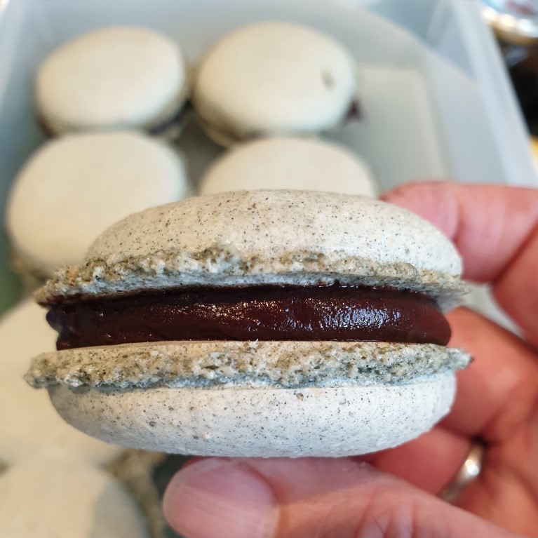 Macarons are easy to make but are time-consuming and they can also be easy to mess up. Don’t try to make them on a humid day! Freeze-dried fruit powder and ground and sifted herbal teas make the flavour combinations endless. They can be filled with any kind of chocolate that is also flavoured with fruit or tea powder or essence or can be filled with butter cream icing. Macarons keep well and make great gifts plus they can also be frozen.
