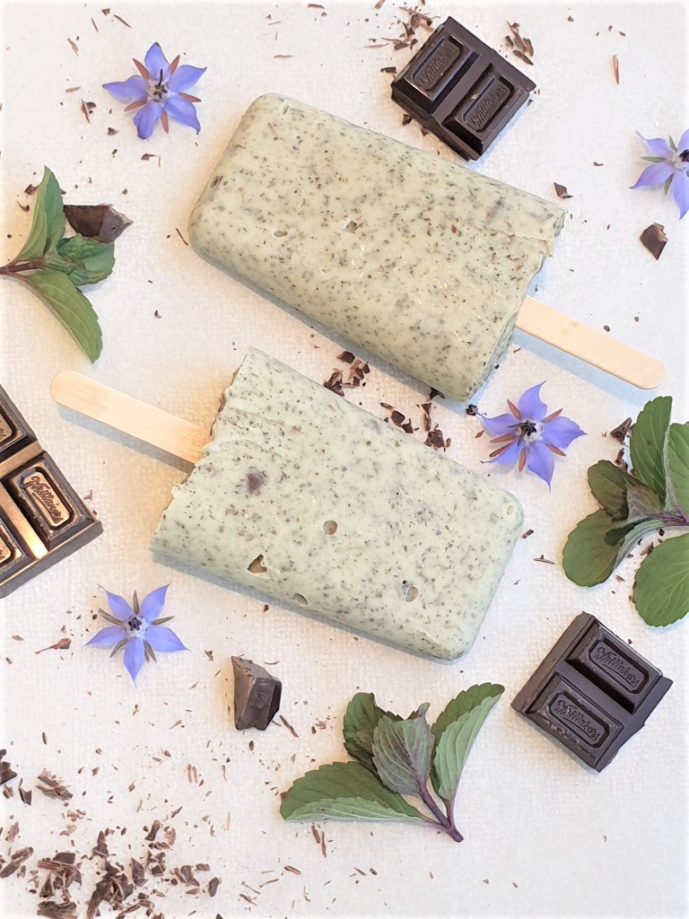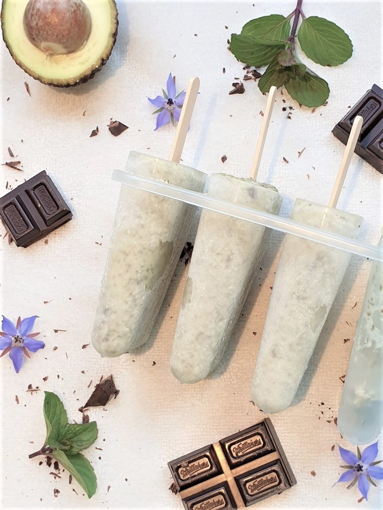 NOTES: To make a quick chocolate coating, use 4 tablespoons of melted coconut oil and to that add 2 tablespoon of cocoa and 2 tablespoons of maple syrup. Mix together and spoon over the frozen ice blocks.